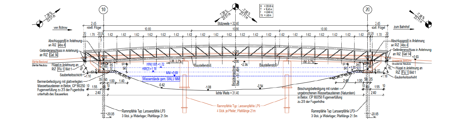 Stützweite 32,4 m, Bauwerksbreite 4,52 m