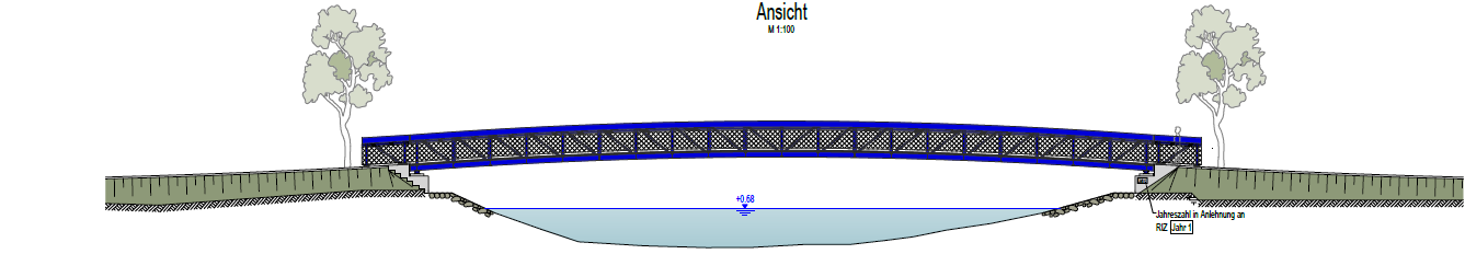 Die Brücke soll als Pilotprojekt in der neuartigen Bauweise „vorgespannter Carbonbeton“ konzeptioniert werden. Hierbei werden die Stützen und der Überbau in Textilbeton, gemäß der DAfStb Richtlinie „Betonbauteile mit nichtmetallischer Bewehrung“ geplant.